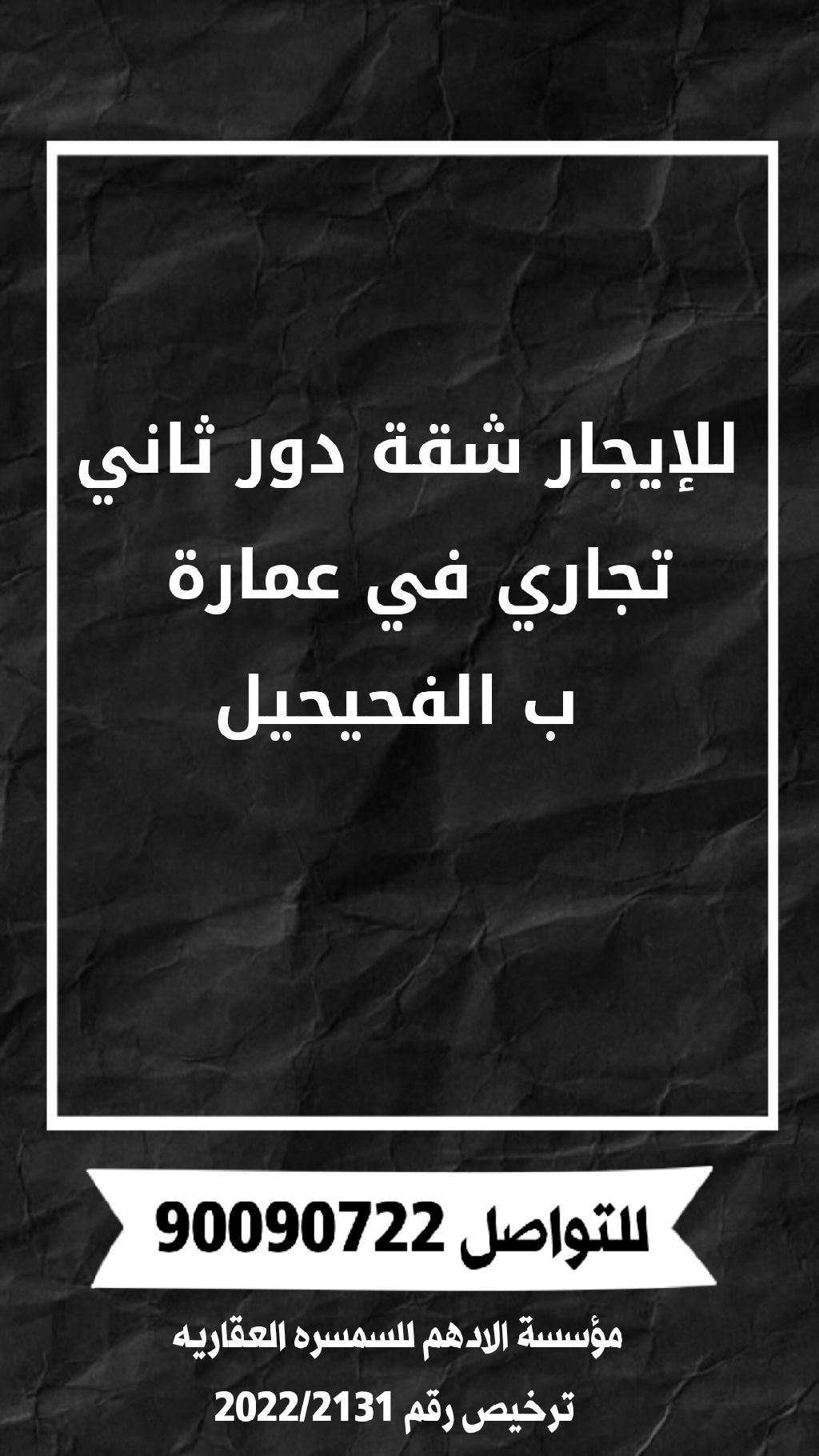 للإيجار شقة دور ثاني تجاري في عمارة ب الفحيحيل للتواصل