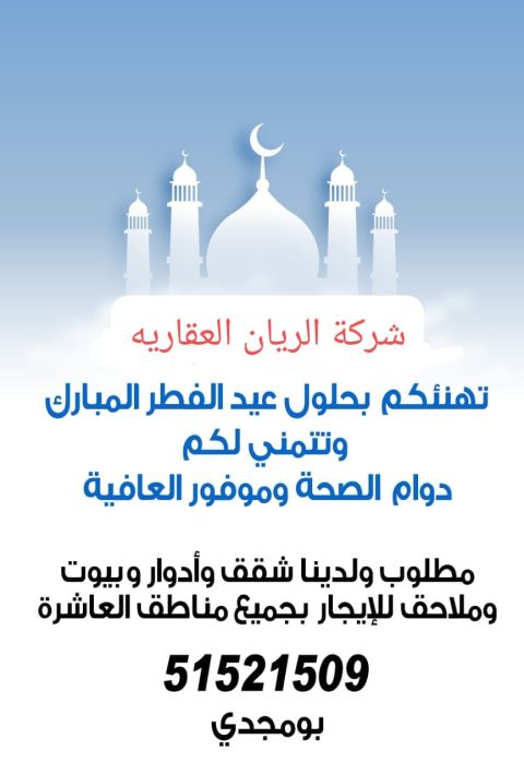 For rent: An apartment in Fintas, Area 3, owner-occupied, 400 KD. 3 bedrooms, including one master bedroom, and two bedrooms sharing a bathroom, a living room, a kitchen, and a maid's room with a bathroom. Features include an elevator, central air conditioning, water heater, filter, and central satellite. For rent: An apartment in Abu Fatira, Area 6, 380 KD. 3 bedrooms, including one master bedroom, and two bedrooms sharing a bathroom, a living room, a kitchen, and a maid's room with a bathroom. Features include an elevator, central air conditioning, water heater, filter, and central satellite. For rent: An apartment in Bufuti.
