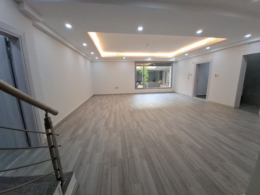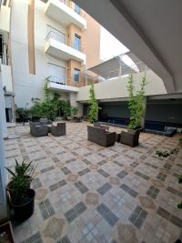 For rent in Fintas near the sea, new luxury duplex with elegant and modern finishing for families only. It consists of 4 bedrooms including two master bedrooms, a maid's room with a bathroom, an equipped kitchen, a living room with a balcony, a swimming pool, and a shared internal garden. There is an elevator and stairs. The ground floor is for KD1000 and the first and second floors are for KD