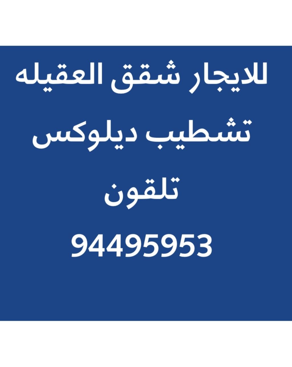 For rent: An apartment in Al-Aqila with deluxe finishing, 3 bedrooms including one master bedroom, plus a maid's room, 3 bathrooms, a living room, and a kitchen. Phone available.