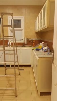 For rent, an apartment in Abdullah Mubarak, second floor with elevator. It consists of 4 bedrooms, with every two bedrooms sharing a bathroom, a fully equipped kitchen, a shaded parking space, and there is a nearby rest area. Rent is 360 KD. A small family is preferred. For contact.