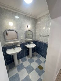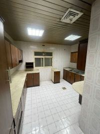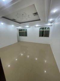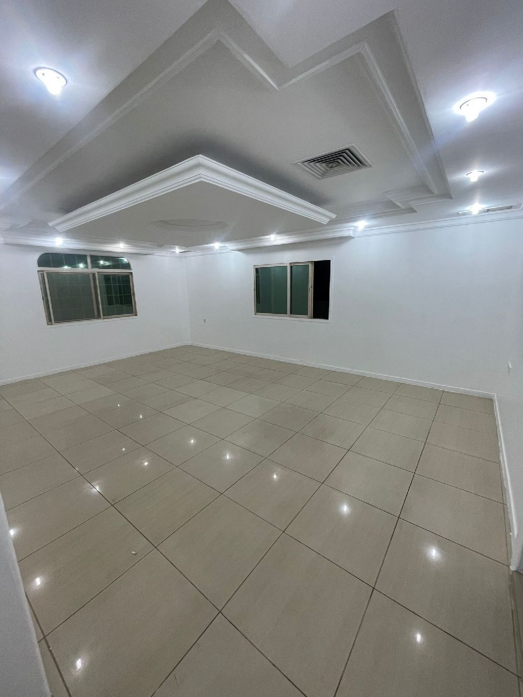 For rent in Adan, a full floor with large areas: 5 bedrooms including a master with a walk-in closet, a large living room with laundry and a guest bathroom, a maid's room, 4 bathrooms, a fully equipped kitchen, central air conditioning, ceramic flooring, and shaded parking. Rent is 650 Kuwaiti dinars.