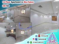 For rent in Abu Fatira, a first-floor apartment from a villa with front and back access, super deluxe finishing, 3 bedrooms (including a master bedroom and two bedrooms sharing a bathroom), a large living room, a maid's room with a bathroom, a fully equipped kitchen, and shaded parking. Rent is 380 KD. For inquiries.