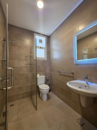 For rent for expatriates only, a large apartment with 2 rooms, 4 bathrooms, a kitchen, and a maid's room. Rent is 450, plus one month security deposit, plus half a month real estate commission.