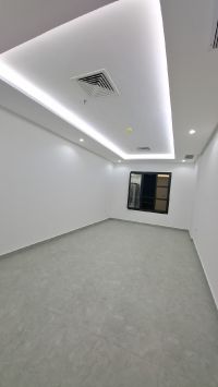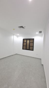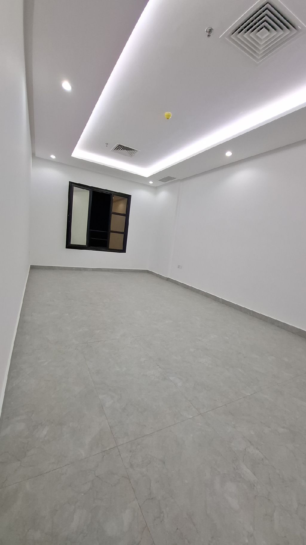 For rent in Al-Mangaf, a new apartment with a private roof on the fourth floor, featuring a 20-meter balcony. It consists of 3 bedrooms, including a master bedroom and a maid's room, with a bathroom, a large living room, and a fully equipped kitchen. Private parking in the basement. Location close to all services. Rent is 380 Kuwaiti dinars, with a one-month security deposit. Families only. Al-Iqlimi Real Estate Brokerage.
