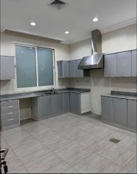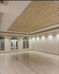 For rent: A duplex in Fintas, Area 2, consisting of a ground floor and a basement. The ground floor includes a large living room, a ready kitchen, a bathroom with laundry area, a maid's room with its own bathroom, two master bedrooms, and two rooms sharing a bathroom. The basement has two living rooms, a bathroom, a master bedroom, and a regular room. Externally, there is a separate driver's room with its bathroom, a laundry room, a kitchen, and a courtyard with space for 5 car parking spots and a garden. The rent is 1750 KD plus one month's security deposit.