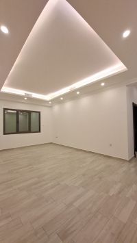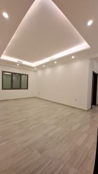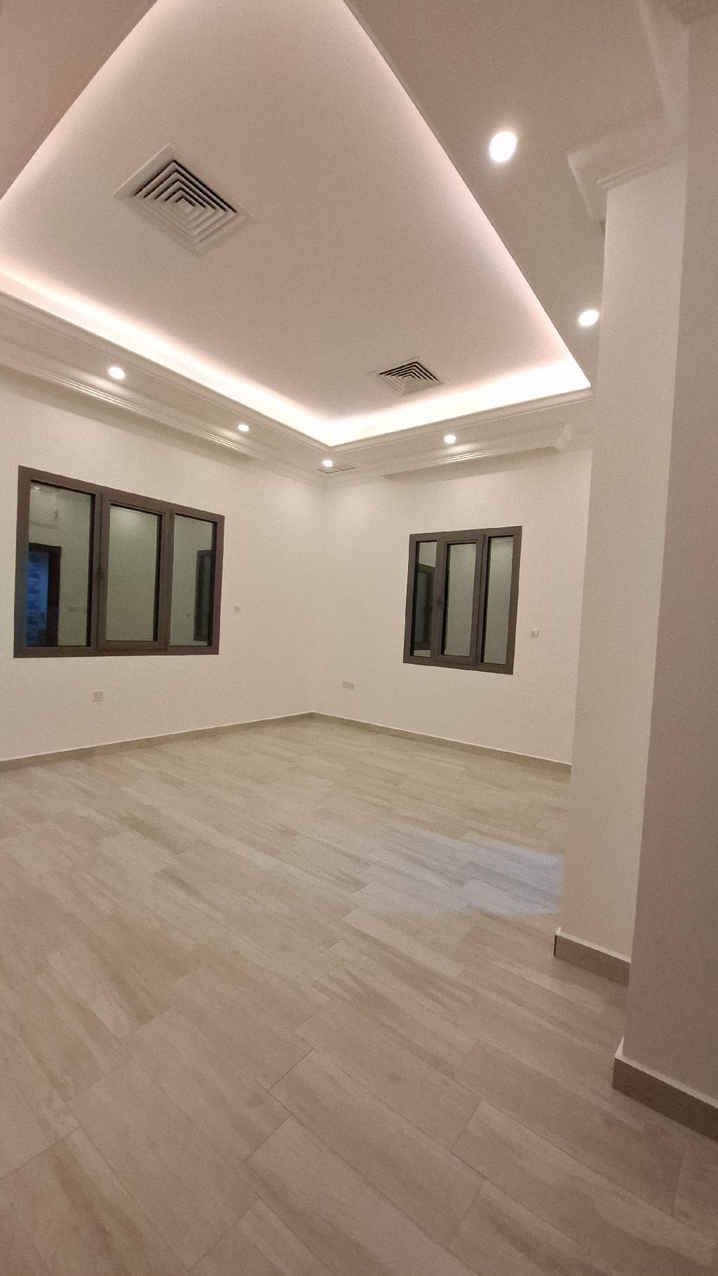 For rent for newlyweds in Fintas and Abu Halifa, apartments with owner occupancy. The apartment consists of 3 rooms, including a master bedroom, a large living room, a fully equipped kitchen, a maid's room with a bathroom, and two parking spaces, some of which are shaded. The rent is 420 Kuwaiti dinars. Contact Dar Al-Iqlimi Real Estate.