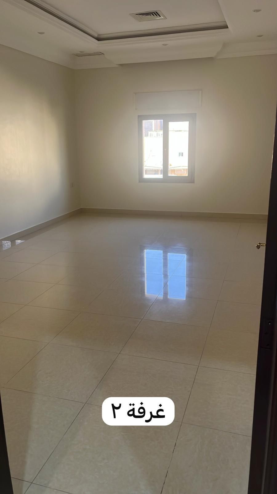 For rent: An apartment in Al-Qusour, first floor, with two bedrooms, two bathrooms, a living room, and a kitchen. Spacious areas, super deluxe finishing, prime location, parking available. Rent is 36 dinars. For contact: Abu Muhammad, real estate office.