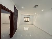 For rent in Abu Fatira, second floor apartment with large areas, prime location, plot 2. It consists of: 3 bedrooms including a master bedroom and two bedrooms with a bathroom between them, a large living room, a fully equipped kitchen, a maid's room with bathroom and laundry, air conditioning, satellite, central exhaust fan, shutters, and two car parking spaces. Near services and the cooperative, easy access. Rent: 400 Kuwaiti Dinars.