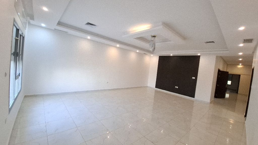 For rent: First floor in Fintas consisting of 4 rooms, all master bedrooms, large areas, a large living room with a bathroom, laundry room, domestic worker's room with a bathroom, large equipped kitchen, location near services, rent 850 KWD. There is also an apartment in the same villa with 3 rooms, rent 450 KWD. Dar Al Iqlimi Real Estate Brokerage.