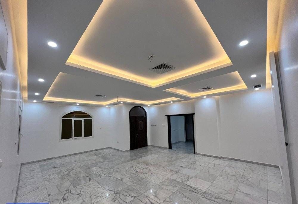 For rent in West Abdullah Al-Mubarak Al-Sabah, Area 7, first floor, 4 rooms, all master bedrooms, with a maid's room and bathroom, elevator, central air conditioning, water heater, water filter, and central satellite system. 700 Kuwaiti Dinars. Two car parking spaces and parking near the mosque.