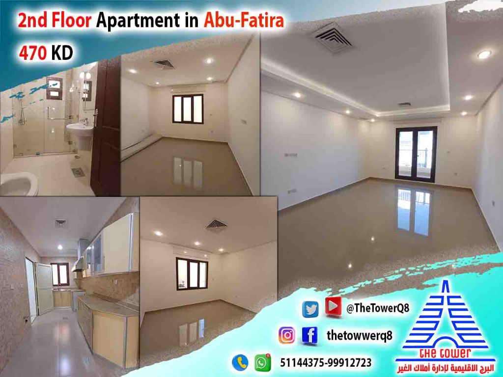 For rent in Abu Fatira, a first-floor apartment with a balcony in a corner villa - super deluxe finishing - 3 bedrooms (including a master bedroom - two rooms share a bathroom) large living room - maid's room with bathroom - equipped kitchen - shaded parking. Rent 470 KD. For inquiries.