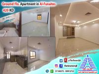 For rent in Fintas, a ground-floor apartment with a private entrance and a yard - part of a duplex villa - large setback - super deluxe finishing - 3 bedrooms (including a master bedroom - two bedrooms share a bathroom) large living room with a guest bathroom - maid's room - equipped kitchen - shaded parking. Rent 420 KD. For inquiries.