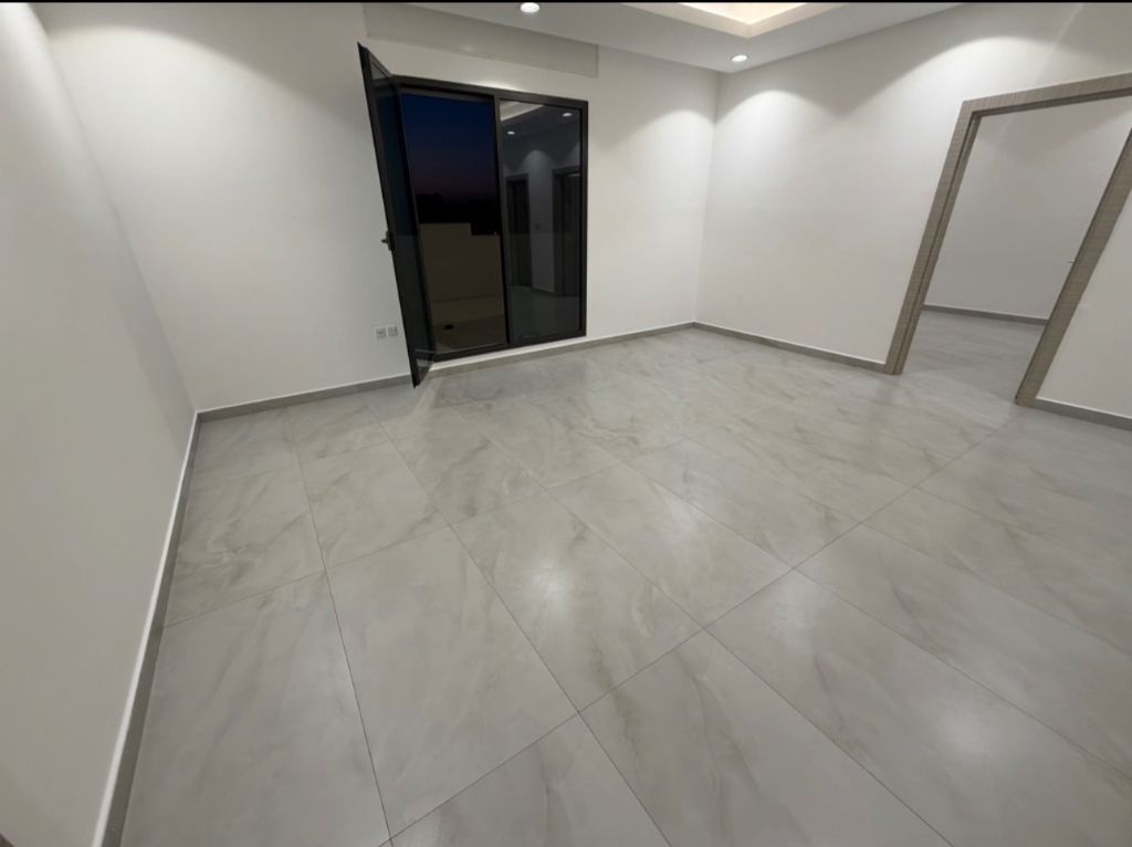 For rent: An apartment with a large roof in Abu Fatira, third floor with elevator, independent entrance on the floor, super deluxe finishing. It consists of two bedrooms (one master bedroom), a large living room, a fully equipped kitchen with central air conditioning, a water heater + central exhaust fan, two bathrooms, a maid's room, two shaded parking spaces side by side, and there is a yard next to the house. Rent: 450 dinars. Divorced women and single women are allowed. For contact.