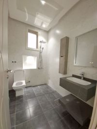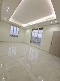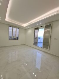 In Abu Fatira, a standalone floor on the third level, super deluxe and modern. It consists of a 7x4 meter living room opening onto a 7x8 meter balcony, a large equipped kitchen, a laundry room, a domestic worker's room with a bathroom, gym parking, and a government yard. The rent is 600 Kuwaiti dinars. The agency is Dar Al Iqlimi Real Estate Brokerage, license number 2018/113503.