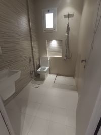For rent in Abu Fatira, Block 3, second floor with a full roof - owner's residence, new finishing, super deluxe, living room, master bedroom, two rooms with a bathroom between them, maid's room with its own bathroom, equipped kitchen, two car parking spaces. Rent: 600 KD.