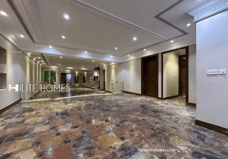 Luxurious 5-bedroom villa in Salwa with spacious interiors and premium amenities. Ground floor: spacious living room, diwaniya, guest toilet, closed-type kitchen, maid's room with bath, outside driver's room, one bedroom with attached bathroom. First floor: four bedrooms, two master bedrooms with en-suite bathrooms, built-in wardrobes. Rent: KD 1400. Realtor fee applicable.