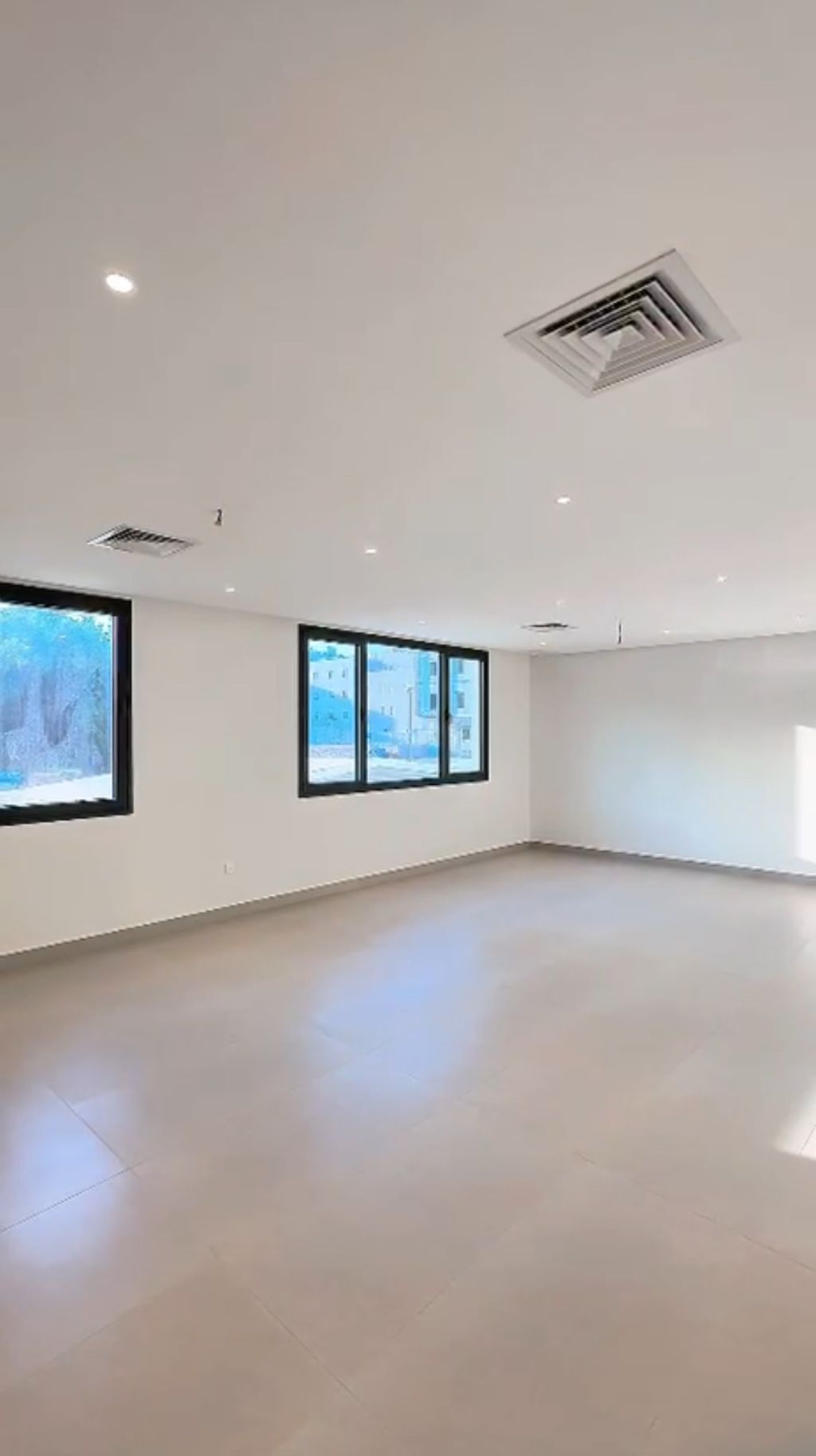 For rent in the Abu Fatira area, new finishing, first occupant, luxurious ground floor, prime location with front and back access. It consists of 4 rooms including 2 master bedrooms, a living room and a salon, a guest bathroom, a kitchen, a maid's room, a laundry room, a driver's room, 2 parking spaces, and there are 9 private visitor parking spaces. The rent is 1000 Kuwaiti dinars.