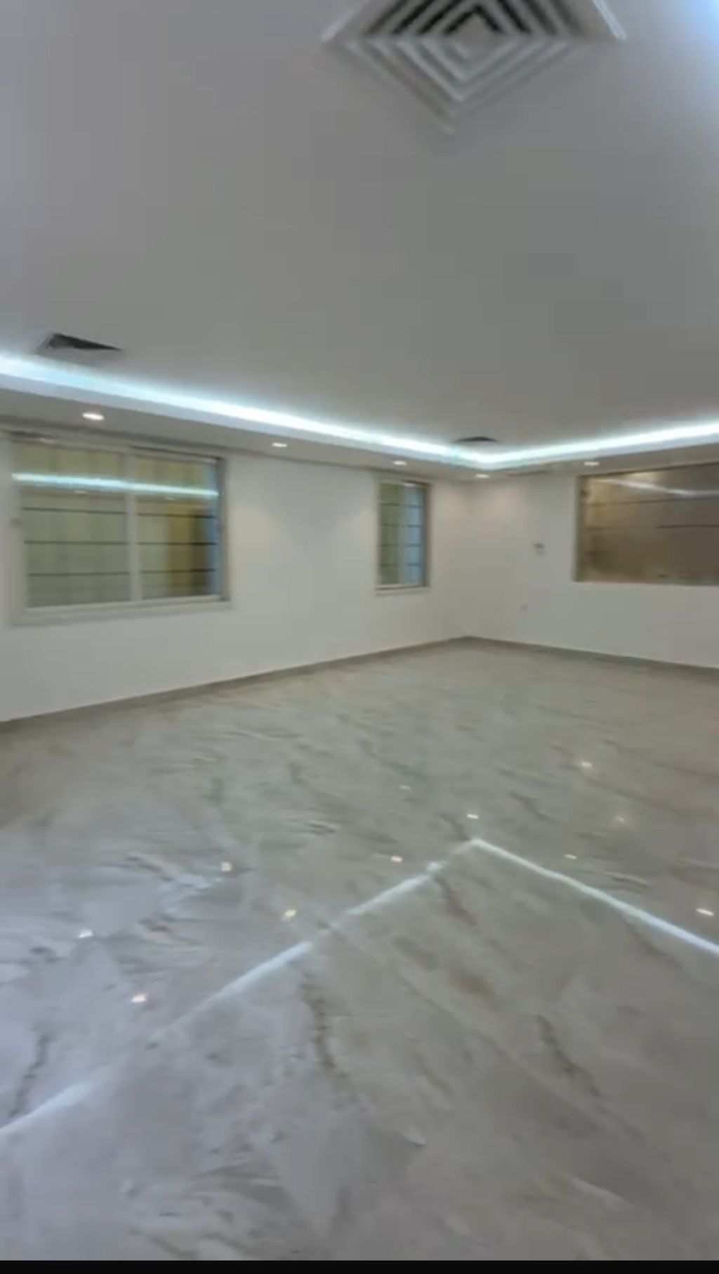 For rent: a luxurious basement floor in Adan, 4 rooms (3 master bedrooms), a spacious living room, a fully equipped kitchen, a maid's room, a driver's room, a laundry room, a guest bathroom, a sunken courtyard with a private garden, 2 shaded parking spots, quiet location and close to services. Rent: 700 Kuwaiti dinars.