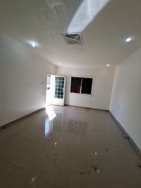 For rent in Mubarak Al-Kabeer, a ground-floor apartment with two entrances, one of which is independent, and two parking spaces. It consists of 3 bedrooms, including a master bedroom, plus a maid's room with a bathroom, a large living room, two courtyards, and a fully equipped kitchen. Location near a mosque, school, and central market. Rent: 400 Kuwaiti Dinars. Agency: Dar Al-Iqlimi Real Estate Brokerage, License Number: 2018/113503.