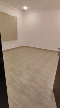 For rent: An apartment in Abu Fatira, Q1, with a private entrance, a courtyard, and a ground floor. Super deluxe finishing. There is an elevator. It consists of 3 bedrooms, including a master bedroom and 2 others with a bathroom between them, plus a large living room, a fully equipped kitchen, and a maid's room with its own bathroom. One parking space. Rent: 350 KD. No objection to a single lady. For contact.