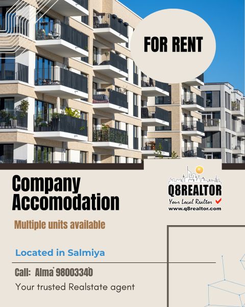 للإيجار عمارة للشركات، أول ساكن في المهبولة، تتكون من 36 شقة. كل شقة تحتوي على 3 غرف، صالة، حمامين، ومطبخ. إيجار الشقة 390 دينار كويتي. يمنع الوسطاء