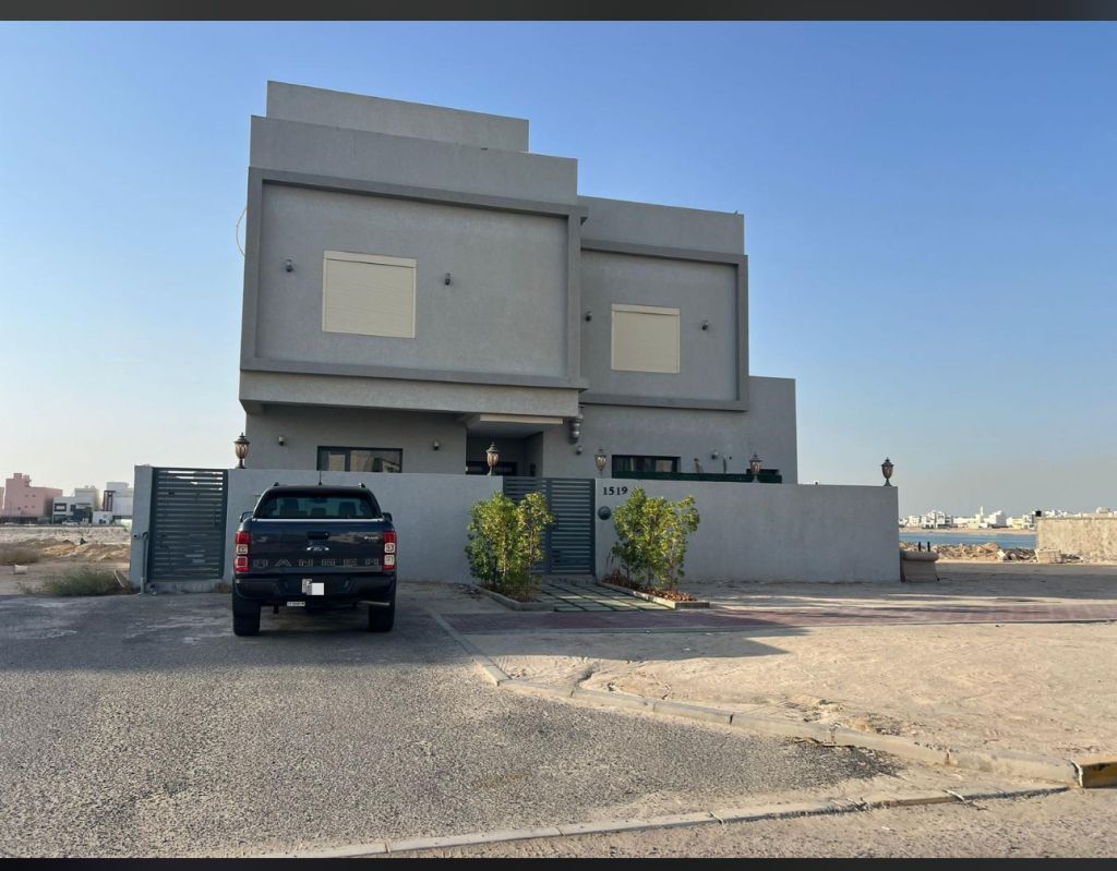 For sale, a chalet in Sabah Al-Ahmad Sea City, Phase Four, area 460 square meters, first row, consisting of two floors, without elevator, central air conditioning, vacant, immediate delivery, freehold document, sale with furniture, price 360,000 Kuwaiti dinars, license number 3192 / 2015.