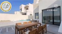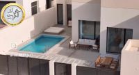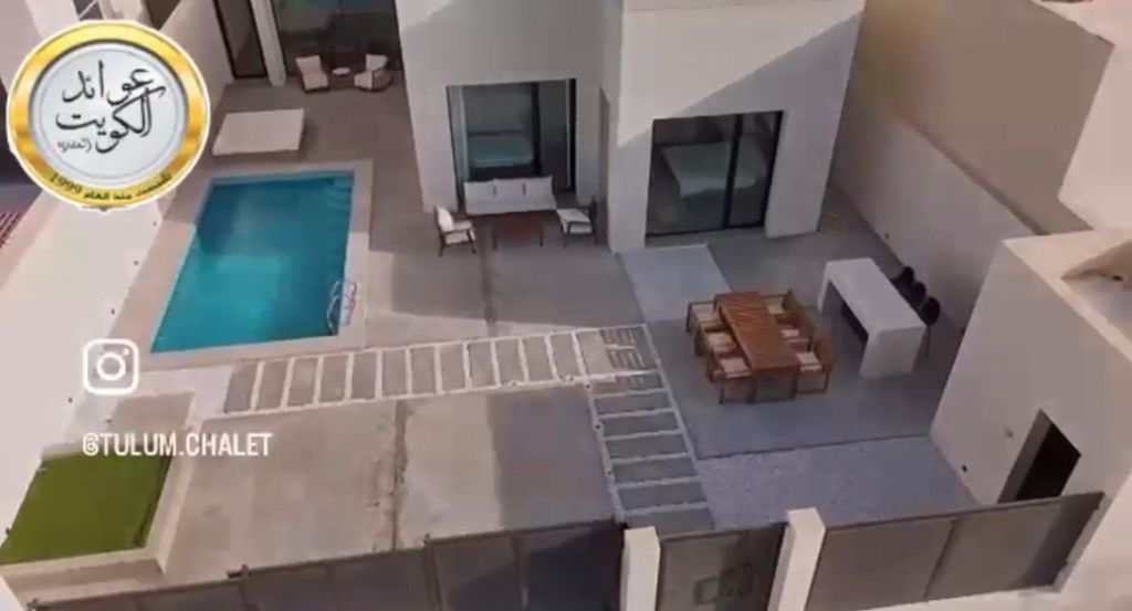 A chalet on the sea in Sabah Al-Ahmad Marine City, Phase 5, with an area of 529 square meters and a wonderful sea view. It consists of one floor containing 3 bedrooms, a reception area, a living room, a dining area, a swimming pool, a storage room, a laundry room, a room for domestic workers, and a room for the driver. Price: 350,000. For contact.