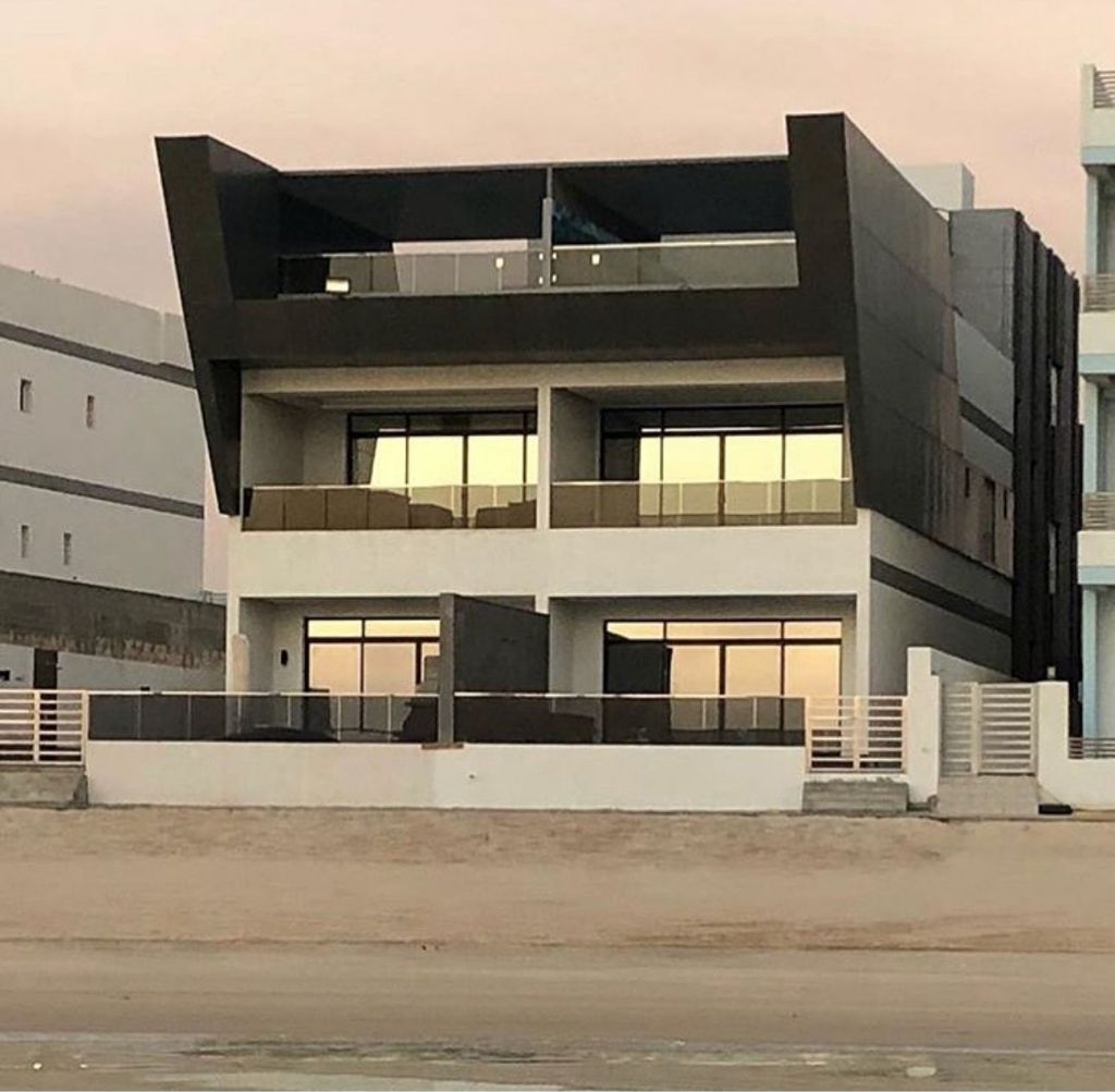 For sale: A chalet in Sabah Al-Ahmad Sea City, Phase 1, first row, area 1195 square meters, very prime location, sea frontage 18 meters, divided into two similar and completely separate villas, clean finishing, price 590 thousand. License number 3192 / 2015.
