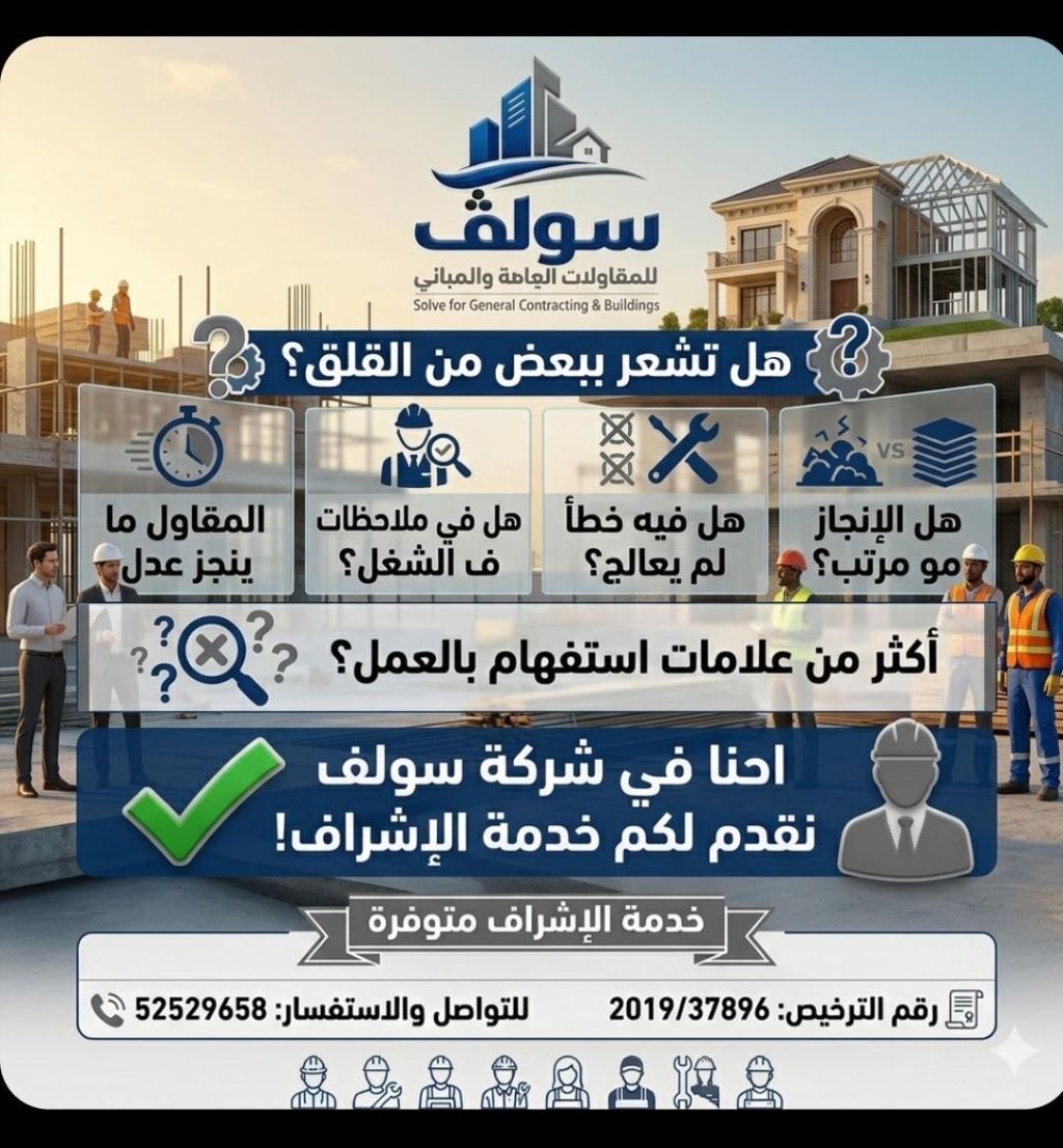Solv General Contracting and Buildings Company helps you build and finish your home from foundation to delivery. Black structure - delivery on open key. Integrated construction solutions, technical supervision and follow - up with great experience. We have quality and we are committed to it, and experience we translate on the ground. We provide you with distinguished and fruitful supervision and follow - up