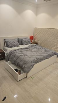 For rent a fully furnished and fully equipped apartment in Sabah Al Ahmad City, super deluxe, with 3 bedrooms (1 master bedroom) two bedrooms with shared bathrooms, a kitchen, and a hall. For more details, please call