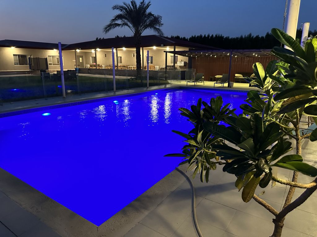 Commercial license number 10571/ 2023. Farms for daily rent in Al - Wafra, for families only. Contains 6 rooms, a swimming pool, an air - conditioned tent, and children'play equipment