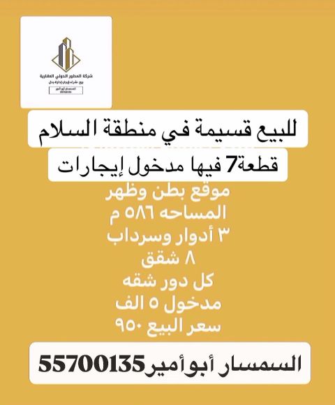 للإيجار: دور فاخر في الرميثية، قطعة 11، مع مدخل ومخرج سهل. الدور الأول يحتوي على 5 غرف نوم (3 ماستر)، وصالة، واستقبال، ومطبخ (جاري التجديد)، وغرفة غسيل، وغرفة خادمة مع حمامها الخاص، ومواقف سيارتين. الإيجار: 900 دينار كويتي. للتواصل: الرميثية.