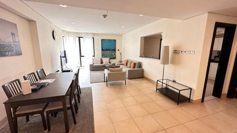 شقة مفروشة حديثة الطابع بغرفتي نوم في بنيد القار. تشمل مسبح، صالة ألعاب رياضية، ملعب تنس، ملعب بادل، ملعب كرة سلة، منطقة لعب للاطفال، أمن على مدار 24 ساعة، وخدمة تنظيف. الإيجار 1100 دينار كويتي