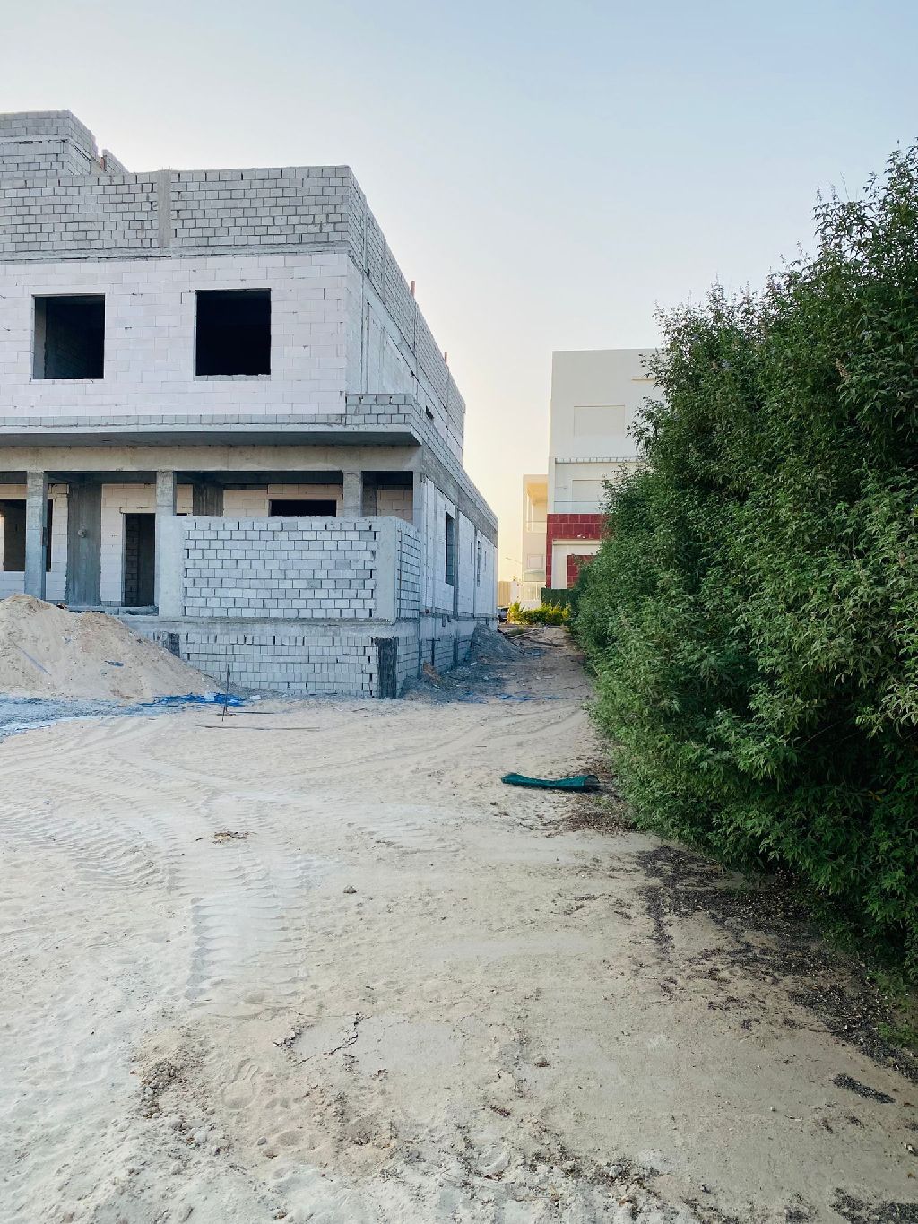 For sale: A villa in the Al-Khiran residential area, plot 7, with a land area of 400 square meters. The house is built on a skeleton structure and is modifiable. It consists of two and a quarter floors with space for an elevator. The deed is free and the description certificate is ready. The location is at the head of 3 streets with an eastern facade and a very large setback. A prime location. The ground floor contains one master bedroom, large open halls with their utilities, a kitchen, a storage room, and a driver's room. The first floor has 4 master bedrooms and two halls. Price: 180,000 Kuwaiti dinars.