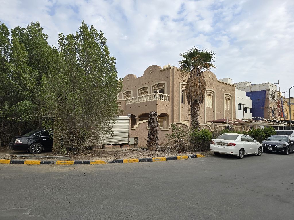 New offer for sale: a house in the Al-Aqila area, 400 square meters, corner plot, 2.5 floors with an internal courtyard, 5 bedrooms including two master bedrooms with living rooms, a large kitchen, an external driver's room, and a quarter floor for services. Easy access and exit, close to amenities. Serious about selling for 370,000 dinars.