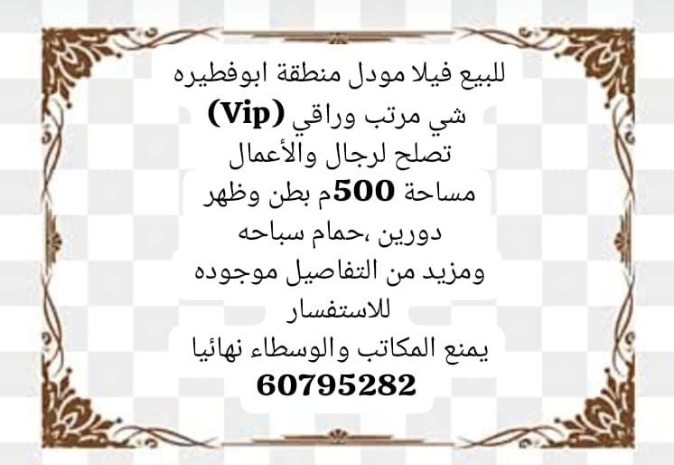 Exclusive Offer - For Sale Villa Model in Abu Fatira Area - Area 500m front and back - The villa consists of two floors - Swimming pool, car garage with shutter door - The villa is suitable for businessmen and suits people of taste - For more inquiries, contact.
