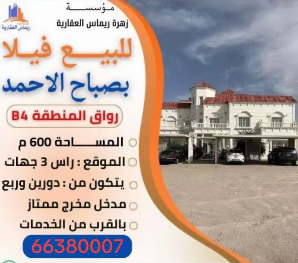 For sale, a villa in Sabah Al-Ahmad Residential Area, two and a quarter floors, located at a corner with three facades and a main street, easy entrance and exit, price 310.