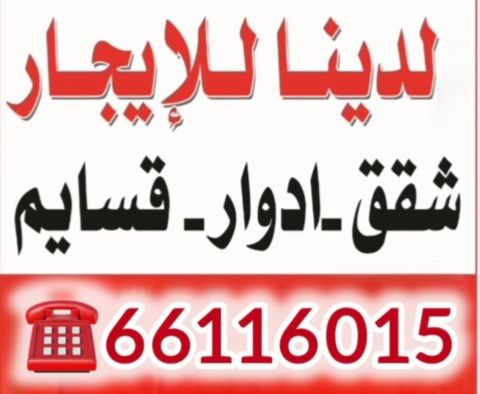 للإيجار: قسيمة في الوفرة، حالياً جاهزة ومعدة للسكن. الطابق الأرضي: ديوانية، حمام، مغاسل، ومقلط. صالتان مع حمامات ومغاسل، وغرفة مع حمام. الطابق الأول: شقتان، كل شقة تحتوي على 3 غرف، حمامين، صالة، ومطبخ. الإيجار: 650 دينار كويتي.
