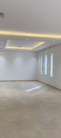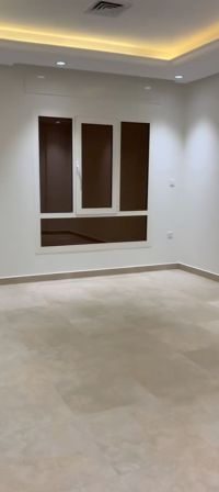 For rent, a full floor in Abu Fatira, VvVIP with deluxe finishing. It consists of a hall and a salon with a guest bathroom and washbasins, a kitchen, and 5 bedrooms including 3 master bedrooms with dressing rooms, two bedrooms sharing a bathroom, a maid's room with its own bathroom, a laundry room, and a storage room. The floor is equipped with a satellite, central heating, and two shaded parking spaces. Rent is 1100 Kuwaiti dinars. Brokers are prohibited.