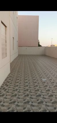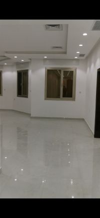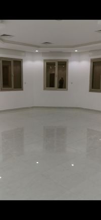 For rent in Sabah Al-Ahmad Residential Area, a new, never-lived-in villa on a wide street and alley, near services. It consists of two floors: the ground floor includes halls + a room with a bathroom, a large equipped kitchen, a diwaniya (guest room) with a bathroom, laundry room, and a driver's room. The first floor has 4 rooms, including 2 master bedrooms, a large hall, a preparation kitchen, a courtyard, shutters, a water heater, and central air conditioning. Brokers are prohibited.