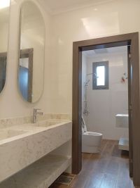 For rent: A brand new VvVIP floor in Fintas, first occupant, owner's residence. Super deluxe, very elegant, and modern finishing. Second floor with an elevator. It consists of a hall with a guest bathroom and washbasins, 4 master bedrooms each with its own private bathroom, a maid's room with a bathroom, a laundry room, a fully equipped kitchen, and one parking space. There is a nearby yard. Rent is 750 Kuwaiti dinars, with a security deposit. Brokers are prohibited.