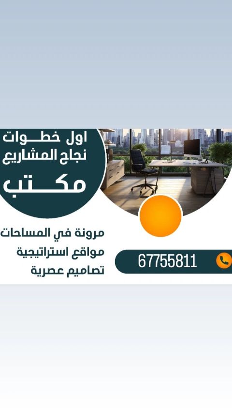 For rent: an office with an approximate area of 35 square meters in Hawalli, Salmiya, the Capital, and Farwaniya. High-end complexes with varied areas, suitable prices, excellent finishing, and an easy location.
