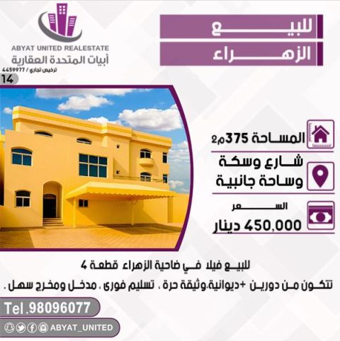 Quick sale. A house in the Ras area, Sabah Al-Ahmad, Sector D, Plot 3, near services and the cooperative. Area 600 square meters, consisting of two floors and a quarter, in addition to a large garden and a large setback, surrounded by three streets. The ground floor built-up area is 500 square meters, the first floor is 500 square meters, the last quarter is 150 square meters, total 1150 square meters. Location on a main street, Ras on three streets, opposite schools and squares, four entrances, very large garden, internal courtyard. The ground floor contains