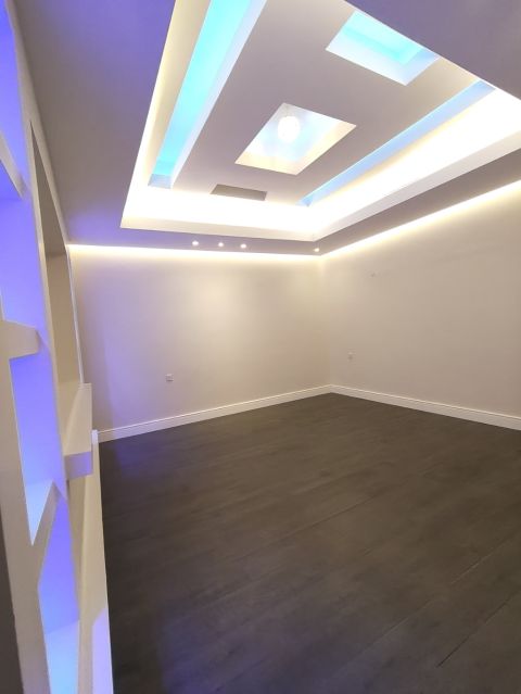 For rent: A ground floor apartment in Abu Fatira, Area 2. It features a large living room, guest washroom and toilet, a large majlis (reception area) with a separate entrance and exit, a large kitchen, a laundry room, a maid's room with its own bathroom, a storage room, 4 master bedrooms, a courtyard, shutters, decorations, lighting, and deluxe high-end finishing. It includes two covered parking spaces, and next to the house there is an open space. The rent is 1000 Kuwaiti Dinars.