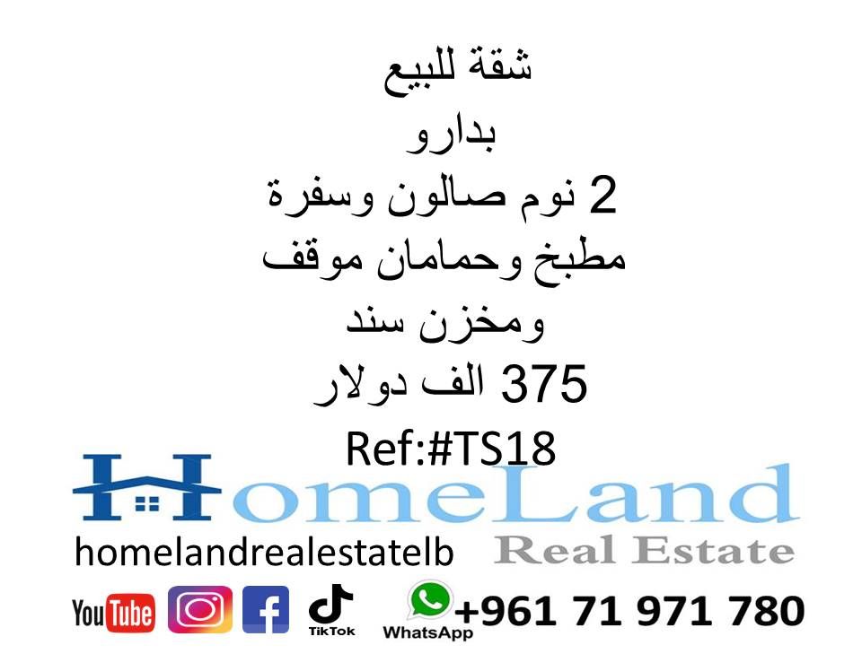 شقة للبيع بدارو 2 نوم صالون وسفرة مطبخ وحمامان موقف ومخزن سند 375 ألف دولار مكتب عقاري للتواصل تلفون