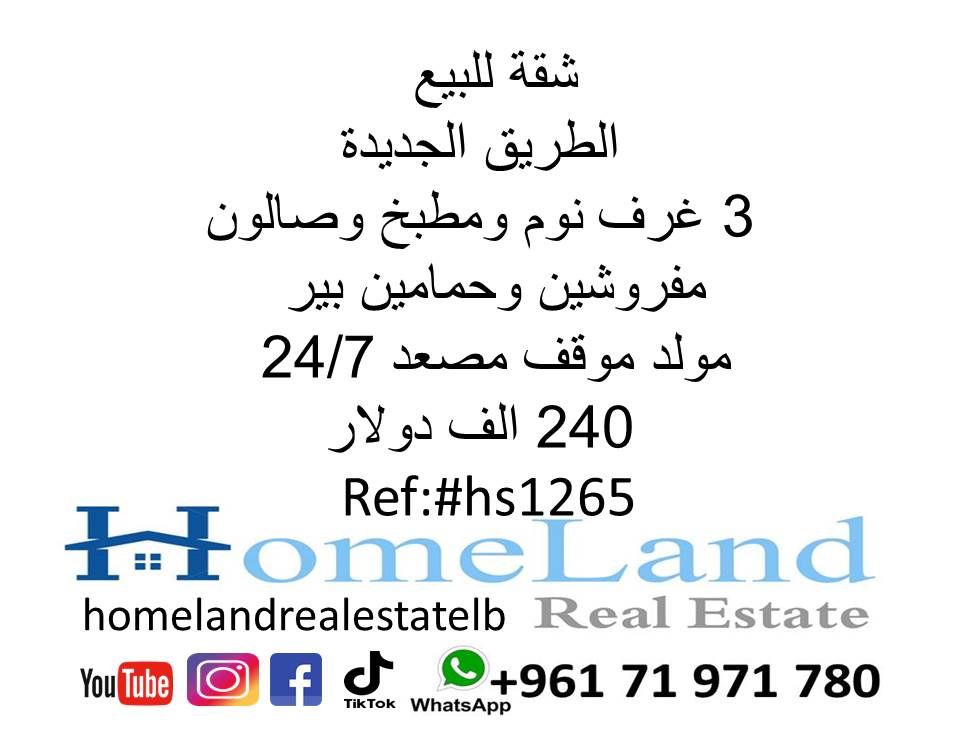 شقة للبيع الطريق الجديدة 3 غرف نوم ومطبخ وصالون مفروشين وحمامين بئر مولد موقف مصعد 24 / 7 240 ألف دولار مكتب عقاري للتواصل تلفون