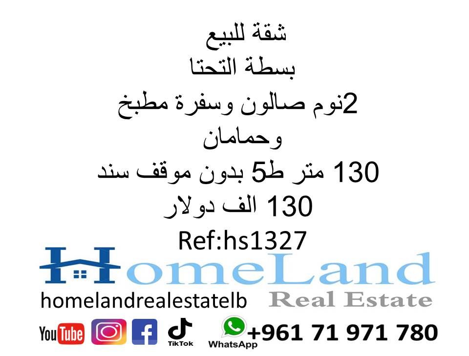 شقة للبيع بسطة التحتا 2 نوم صالون وسفرة مطبخ وحمامان 130 متر ط 5 بدون موقف سند 130 ألف دولار مكتب عقاري للتواصل تلفون