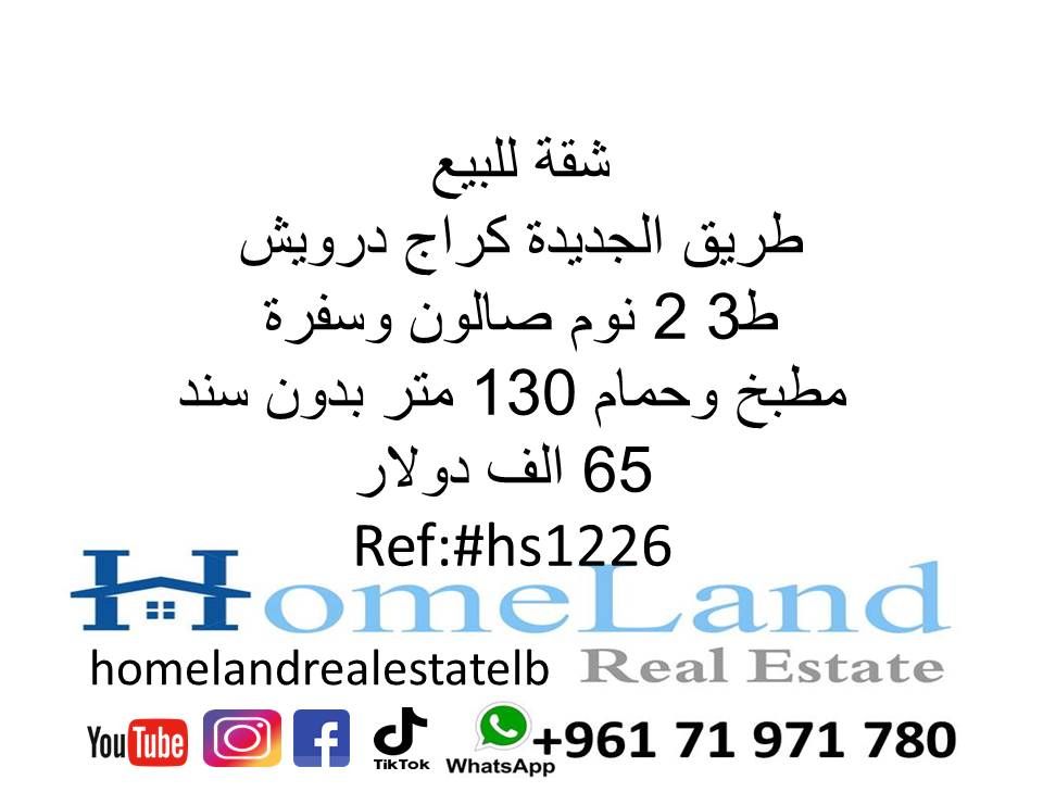 شقة للبيع طريق الجديدة كراج درويش ط 3 2 نوم صالون وسفرة مطبخ وحمام 130 متر بدون سند 65 ألف دولار مكتب عقاري للتواصل