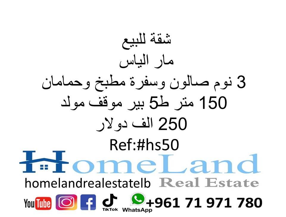 شقة للبيع مار الياس 3 نوم صالون وسفرة مطبخ وحمامان ط 5 بئر موقف مولد 250 ألف دولار مكتب عقاري للتواصل تلفون
